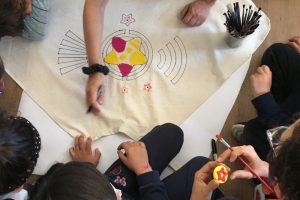 A través de una propuesta lúdico creativa se llevó a lxs niñxs a comprender la función del vestuario escénico y a conocer las decisiones básicas a las que se enfrenta un diseñador de vestuario, elección de una paleta de materiales, posibilidades de transformación de un material, etc.